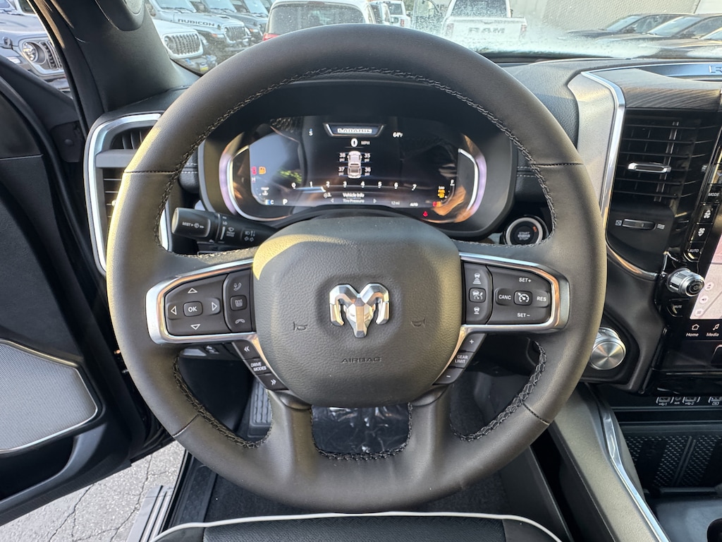 QUICK ORDER PACKAGE 21H LARAMIE -inc: Engine: 3.0L I6 Hurricane SO Twin Turbo ESS, Transmission: 8-Speed Automatic (8HP75) , RADIO: UCONNECT 5 NAV W/14.4" DISPLAY, POWER DEPLOYABLE RUNNING BOARDS, NIGHT EDITION -inc: Black Headlamp Bezels, Wheels: 22" x 9" Forged Aluminum, Tires: 285/45R22XL BSW All Season, Pirelli Brand Tires, Proximity Approach/Departure Lamps, Anti-Spin Differential Rear Axle, Accent Color Door Handles, Black Interior Accents, Body Color Front Bumper, Grille Surround 3 Black Texture 2 Black, Body Color Rear Bumper w/Step Pads, RAM Grille Badge - Black, Black Painted Exterior Mirrors Caps, Exterior Mirrors Approach Lamps, Accent Color Premium Power Mirrors, Sport Performance Hood, Black Exterior Truck Badging, Accent Color Tailgate Handle, Dual Exhaust w/Black Tips, Black Tail Lamp Bezels, MANUFACTURER'S STATEMENT OF ORIGIN, LARAMIE LEVEL 2 EQUIPMENT GROUP -inc: Rain Sensitive Windshield Wipers, Front Passenger Interactive Display, Secondary Active Grille Shutters, Smartphone As A Key Capable, 14.4" Touchscreen Display, Dual Wireless Charging Pad, Radio: Uconnect 5 Nav w/14.4" Display, harman/kardon 19 Speaker Premium Sound, Cluster 12" TFT Color Display, Power Tailgate, FRONT LICENSE PLATE BRACKET, ENGINE: 3.0L I6 HURRICANE SO TWIN TURBO ESS (STD), DIAMOND BLACK CRYSTAL PEARLCOAT, BLACK, LEATHER TRIMMED BUCKET SEATS.